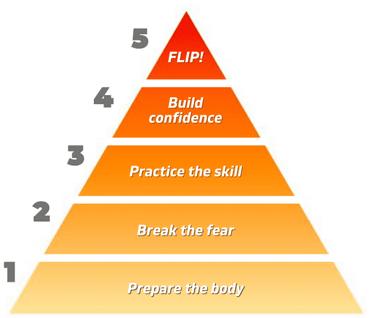 The methodology in this program is meant to slowly break your fear of flipping by practicing alternative movements that progress as you gain confidence.